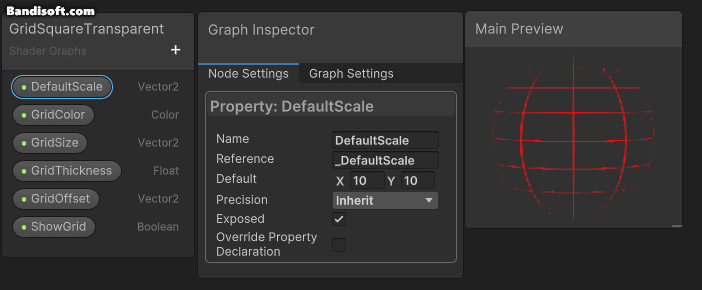 설정된 Property는 총 6개로, DefaultScale, GridColor, GridSize, GridThickness, GridOffset, ShowGrid가 있다.