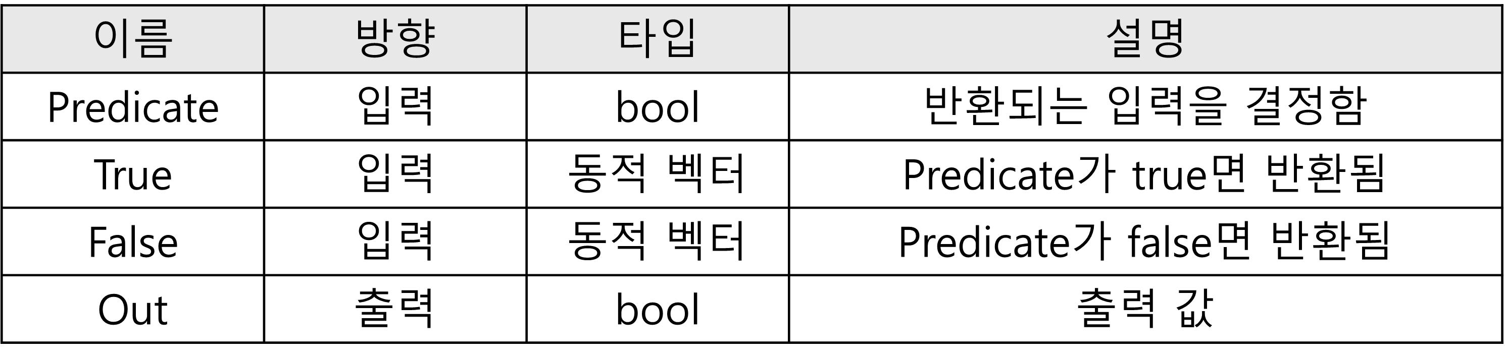 Branch 노드는 Predicate 입력이 true면 반환 출력은 True 입력과 같고, 그렇지 않으면 False 입력과 같다.